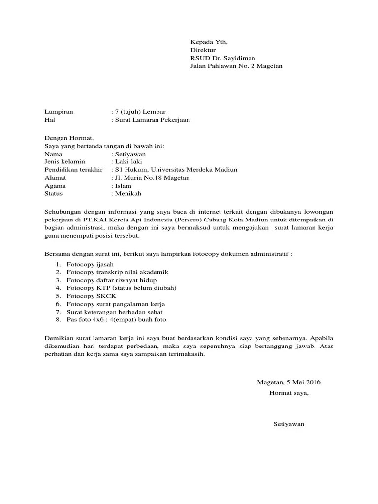 Contoh surat lamaran kerja pramugari kereta api. Contoh surat lamaran kerja untuk melamar sebagai pramugari dan pramugara. Informasi yang anda cari adalah contoh surat lamaran kerja untuk pramugari kereta apidibawah ini telah kami sajikan . Contoh surat lamaran kerja pramugari kereta api. Cara menulis surat lamaran kerja · 1.